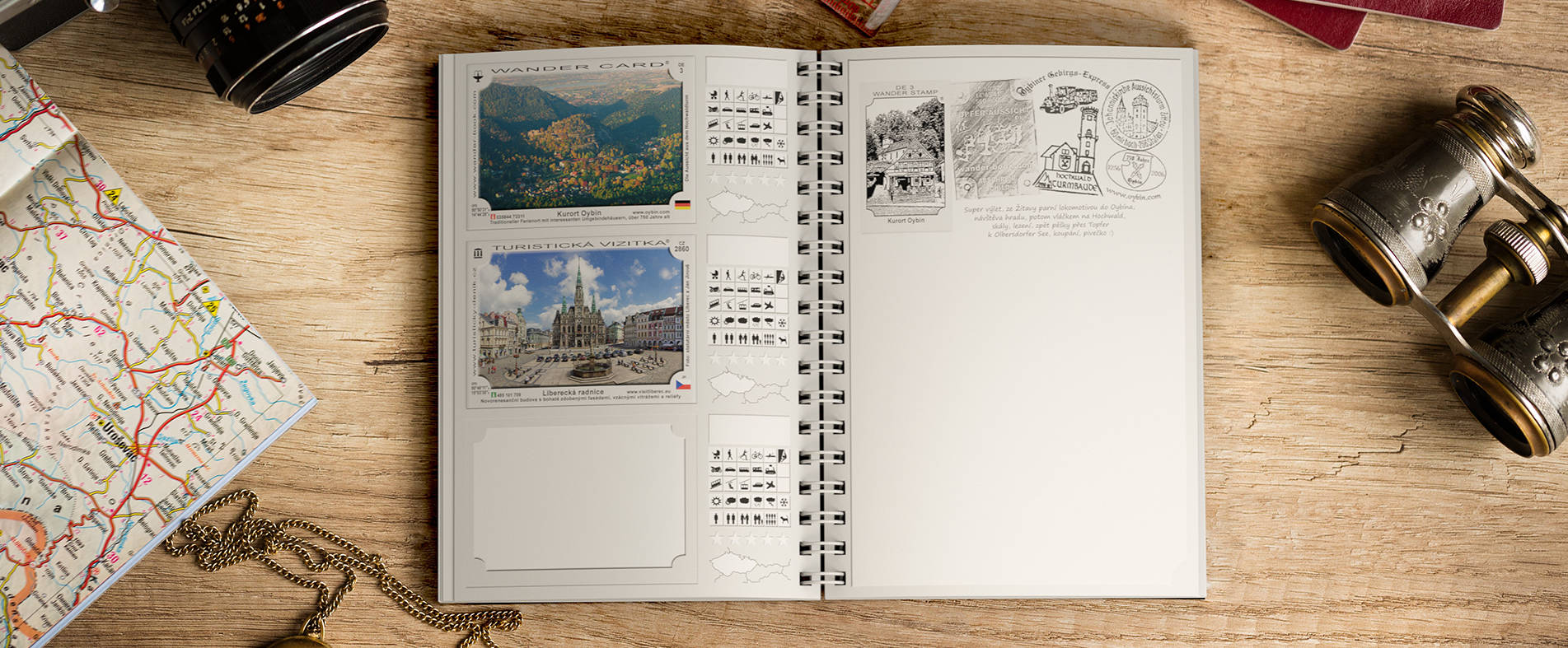 Stwórz oryginalny album z podróży, pełen przygód, pieczątek i Wander Card.